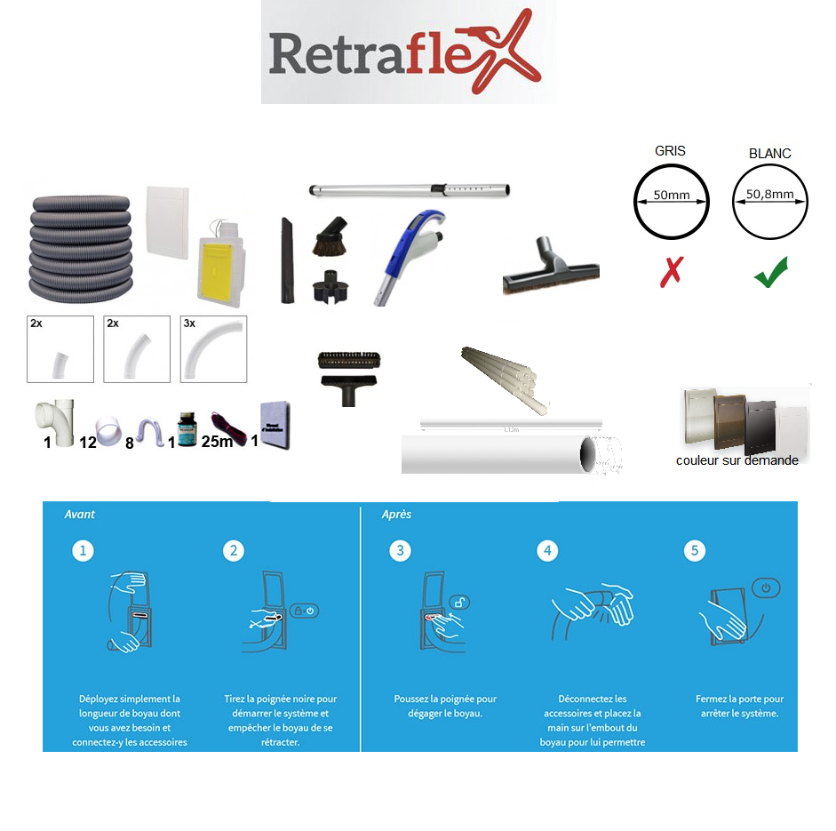 Kit 2 prises RETRAFLEX nouvelle génération,aspiration centralisée